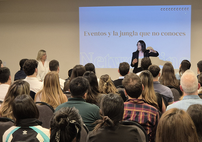 “El networking es fundamental para el desarrollo profesional, pero no se trata de ir a un evento a cambiar la tarjeta o el QR ni de venderse. Es una habilidad que requiere práctica y, con el tiempo, se incorpora. No pasen una semana sin hacer networking”, señaló Terminielli.